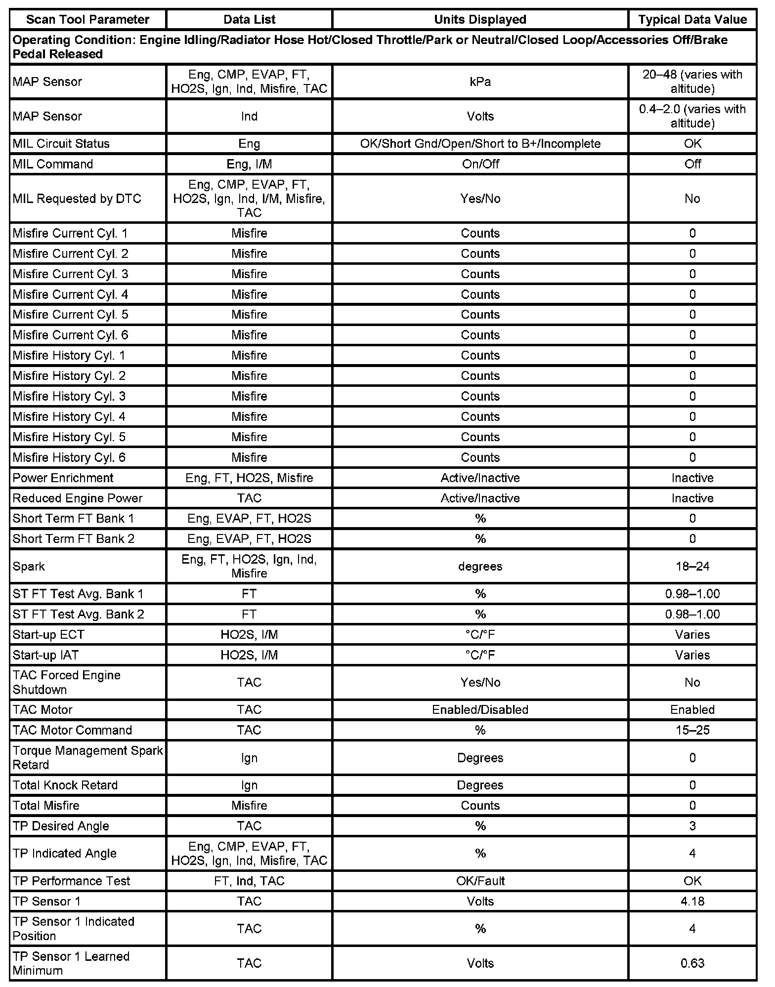 The scan tool values from a properly running engine may be used for comparison with the engine you are diagnosing. The Engine Scan Tool Data List represents values that would be seen on a normally running engine.