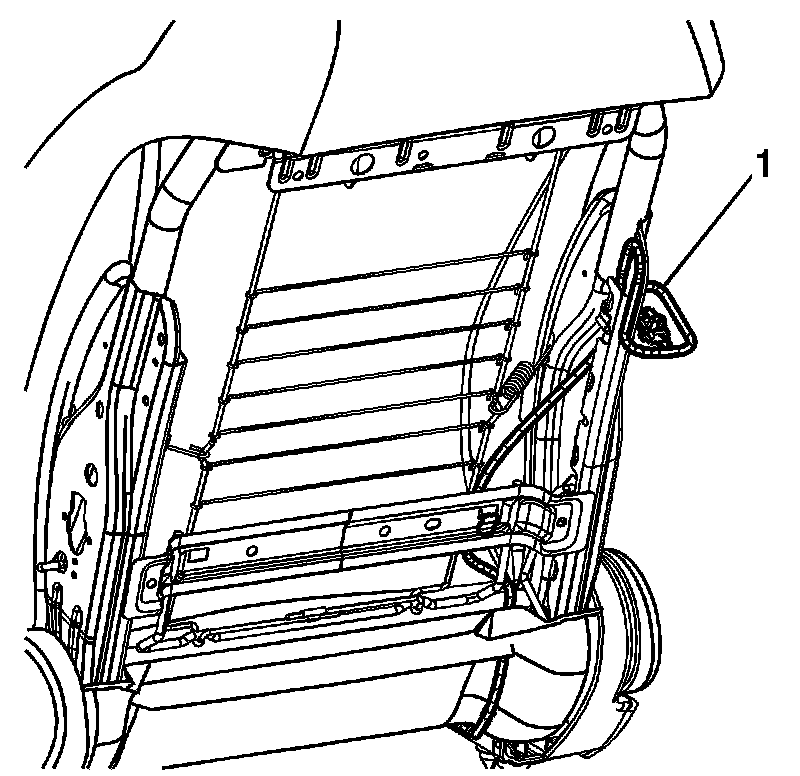 With the seat back panel removed, the inflatable restraint side impact module wiring harness (1) will be exposed.