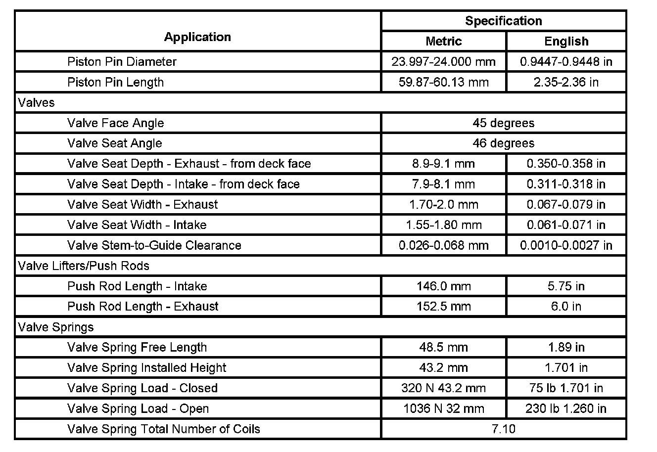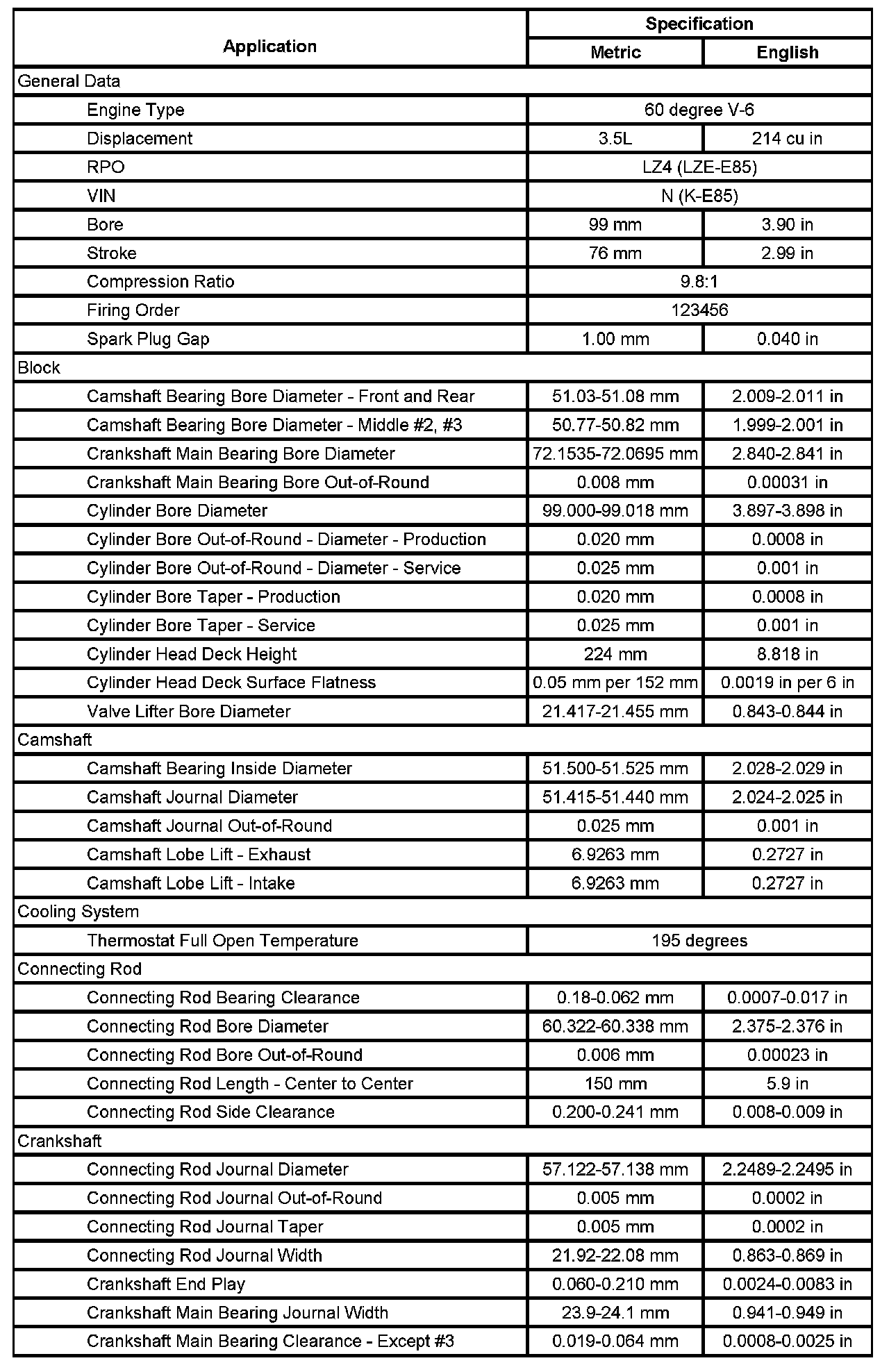 Engine Mechanical Specifications