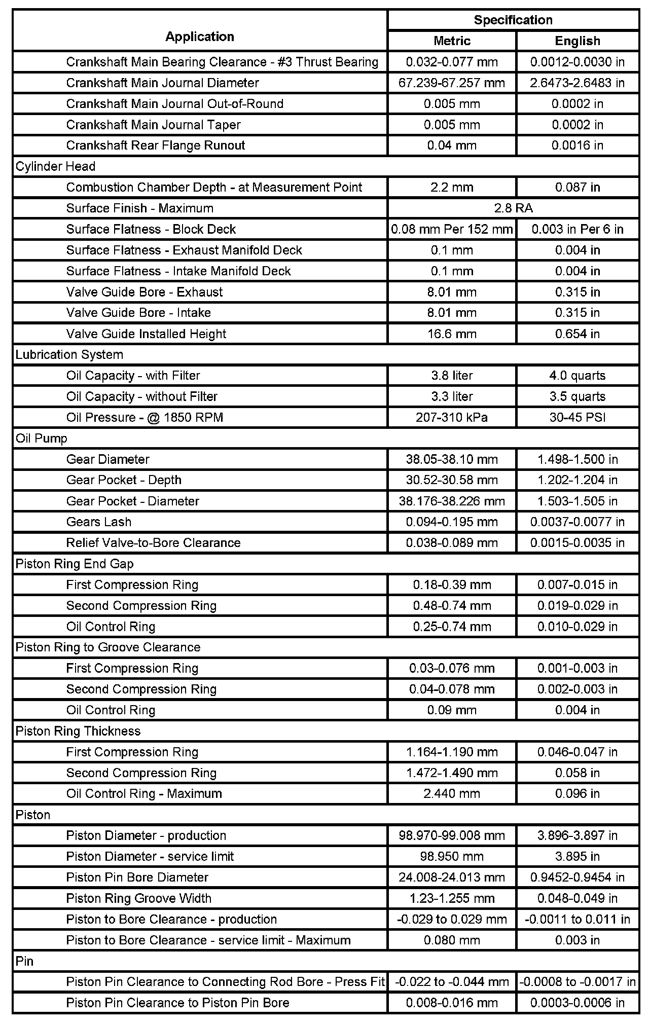 Engine Mechanical Specifications (Part 2):