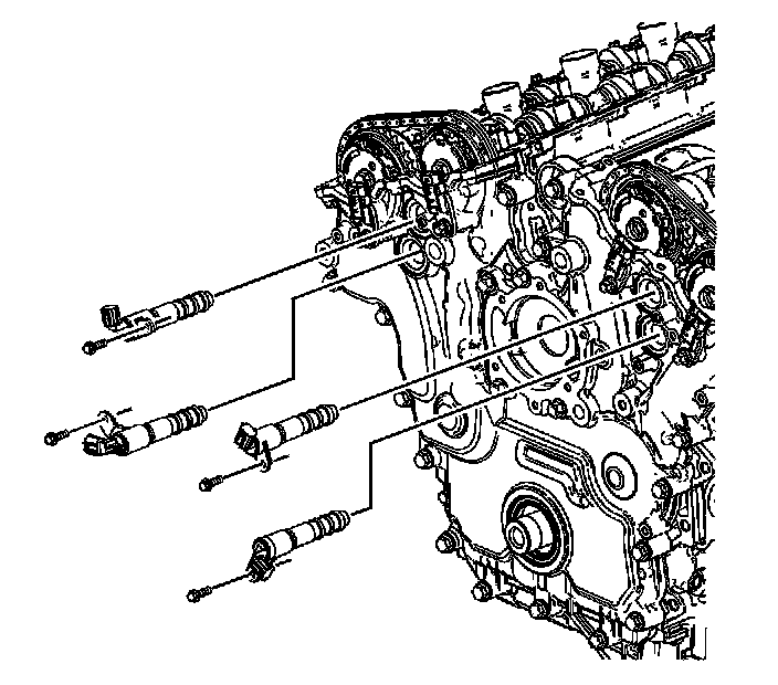 2. Remove the camshaft position actuator valves from the front cover.