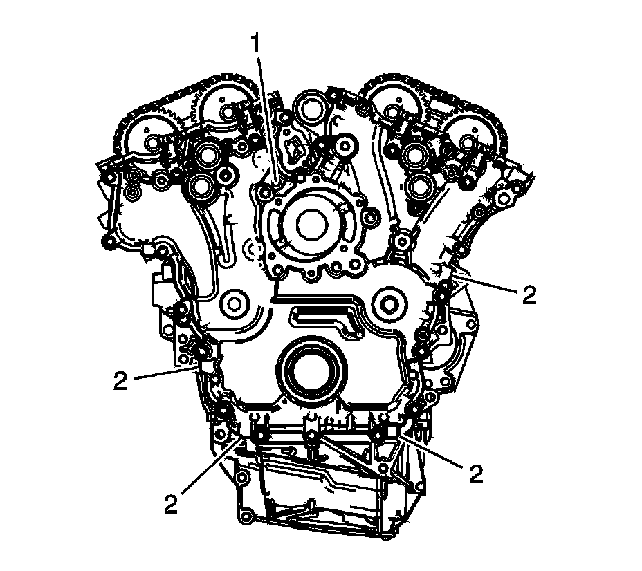 Notice: Do not pry between the engine front cover and the camshaft position sensors or the camshaft position actuators in order to shear the RTV. Use the pry points and a bolt in the jackscrew hole in order to remove the engine front cover. Damage to the camshaft position sensors or the camshaft position actuators may occur if the camshaft position sensors or the camshaft position actuators are used to pry against in order to remove the engine front cover.
