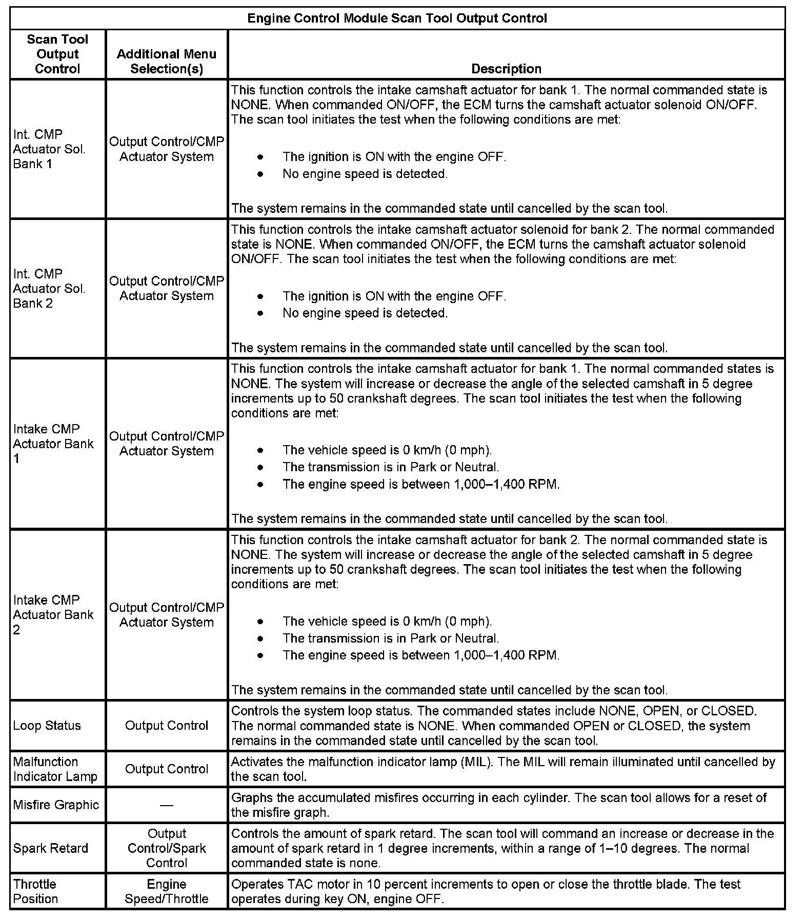 Scan Tool Output Controls