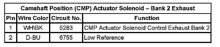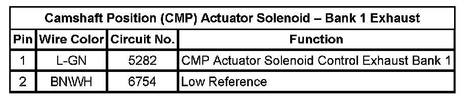Camshaft Position (CMP) Actuator Solenoid - Bank 1 Exhaust