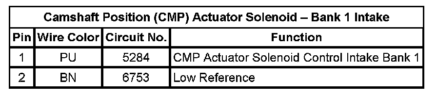 Camshaft Position (CMP) Actuator Solenoid - Bank 1 Intake