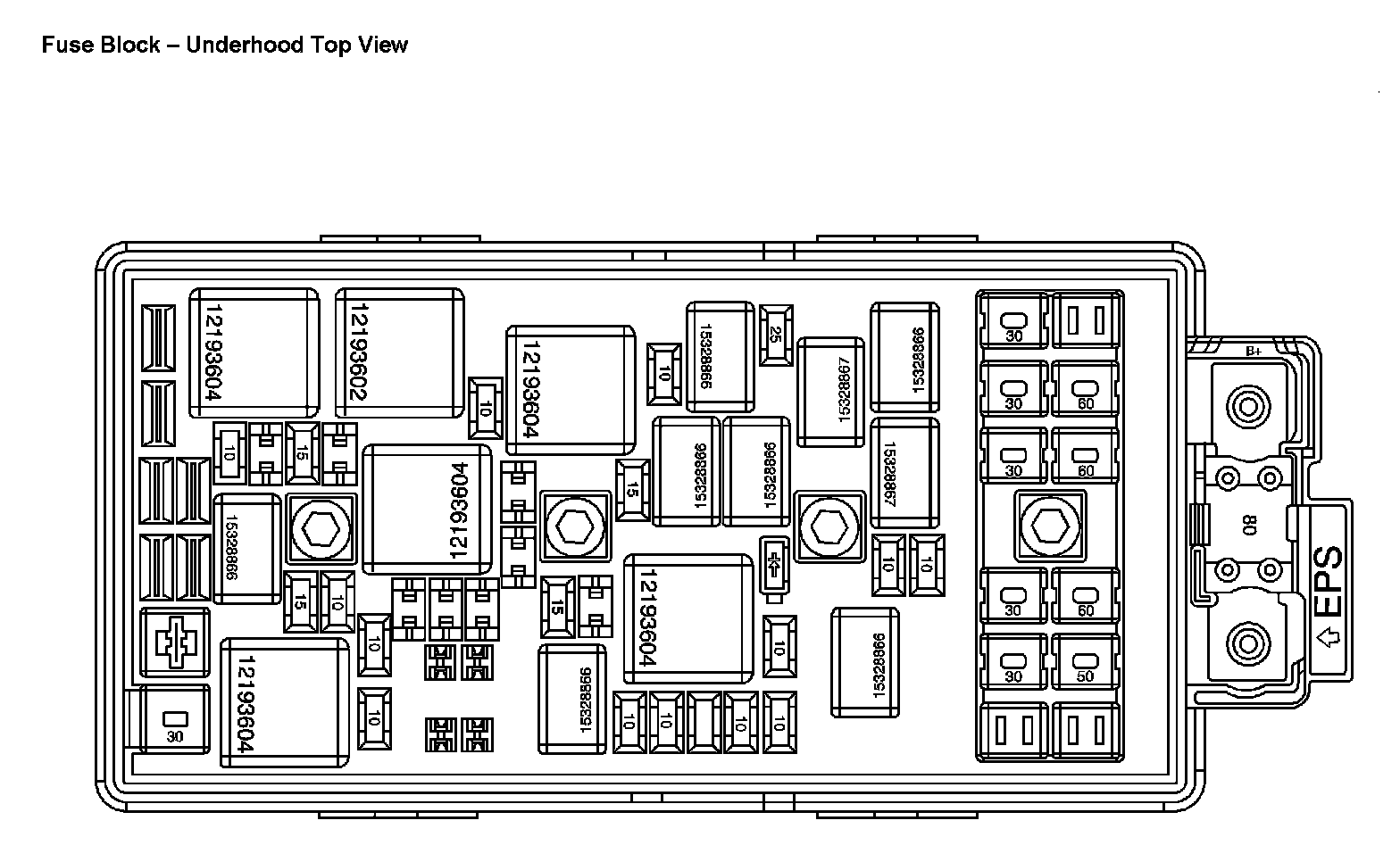 Fuse Block - Underhood Bottom View:
