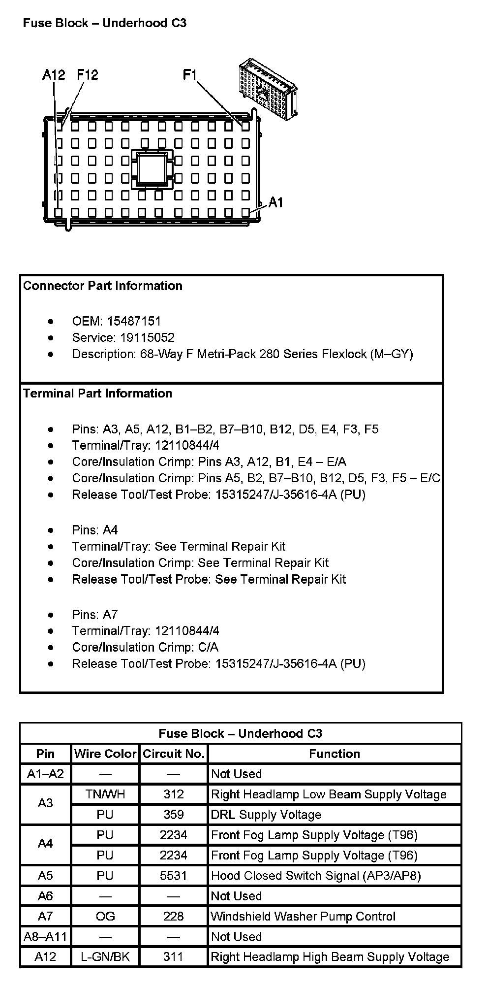 Fuse Block - Underhood C3 (Pin A1 To A12):