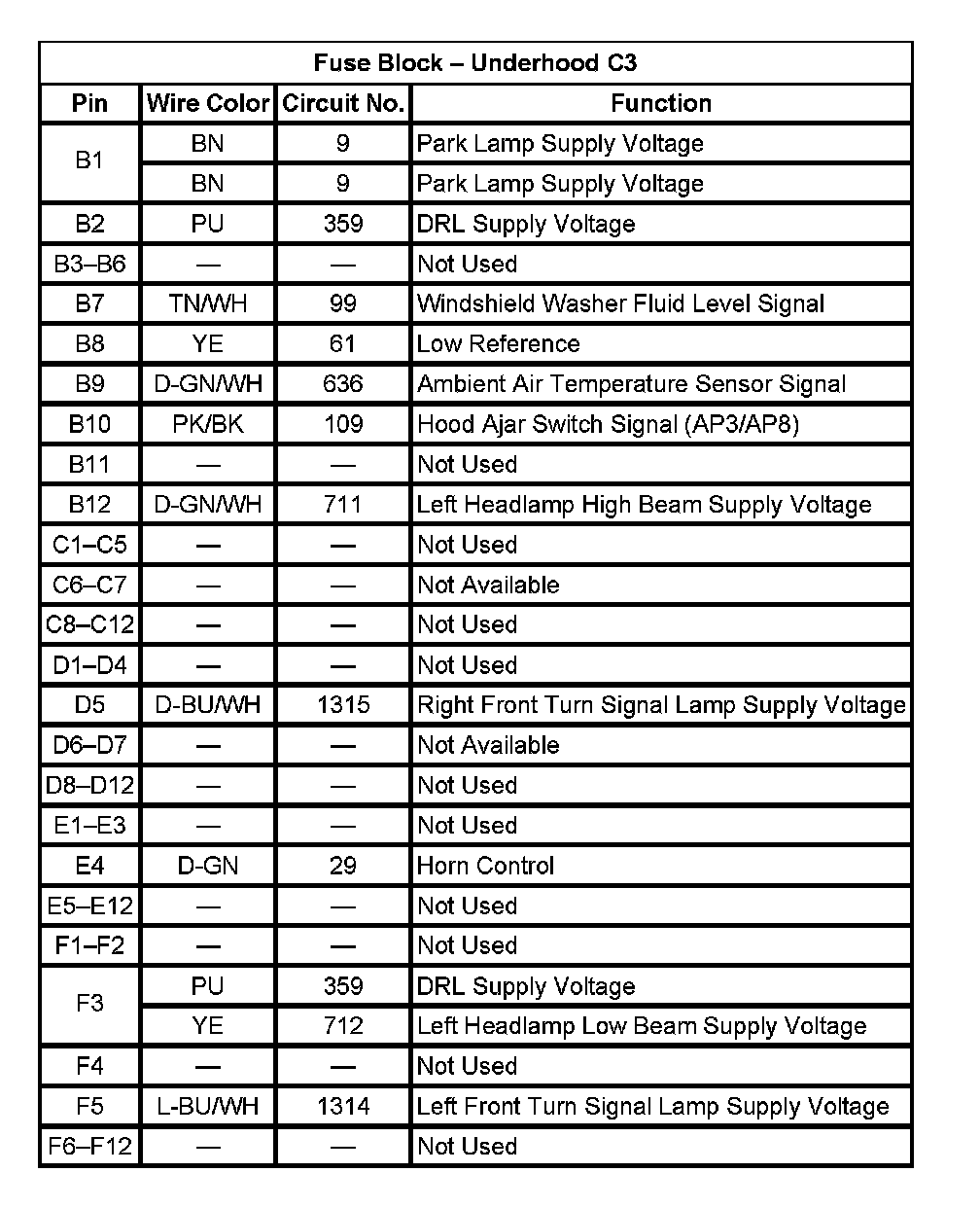 Fuse Block - Underhood C3 (Pin B1 To F12):