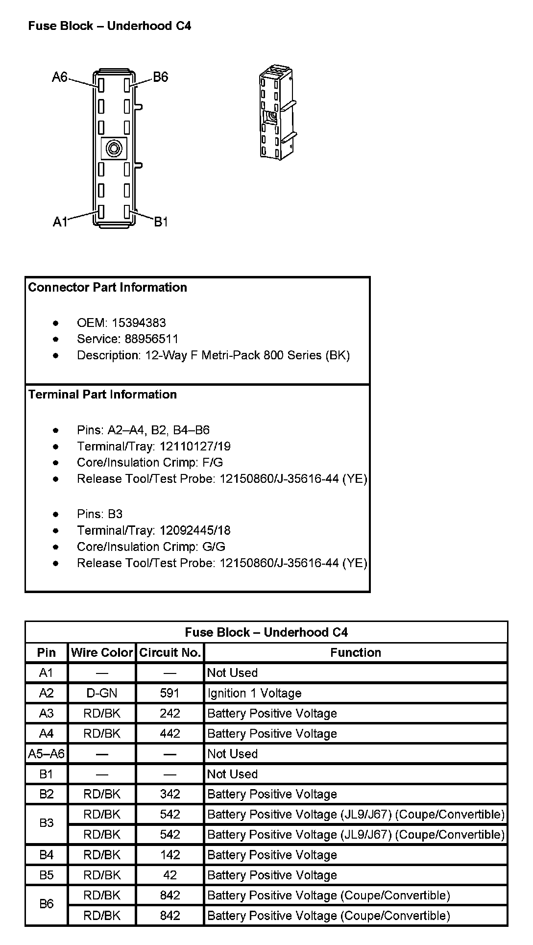 Fuse Block - Underhood C4 Pin A1 To B6: