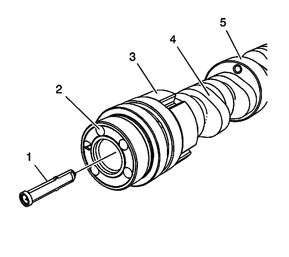 8. Remove and discard the camshaft position actuator filter (1) from the end of the camshaft.