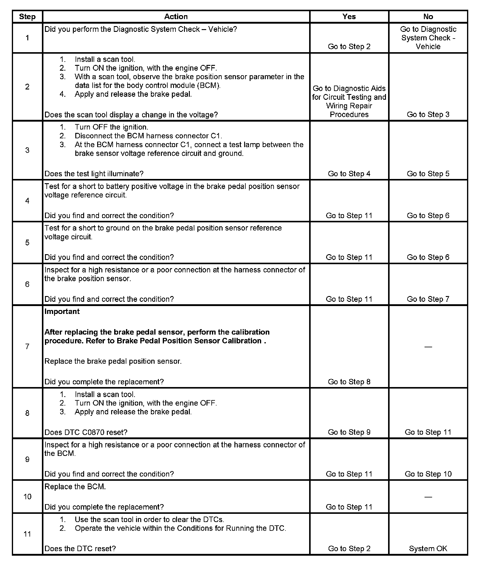 DTC C0870 Brake Pedal Position Sensor Reference Output Circuit