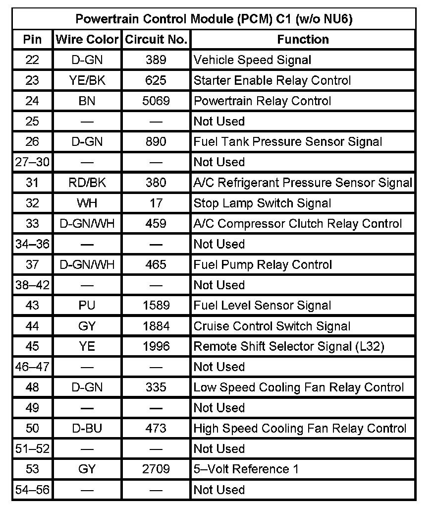 Powertrain Control Module (PCM) C1 (w/o NU6) (Pin 22 To 56):