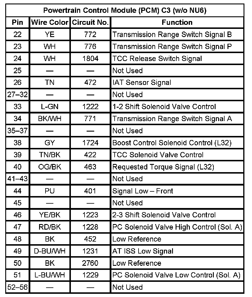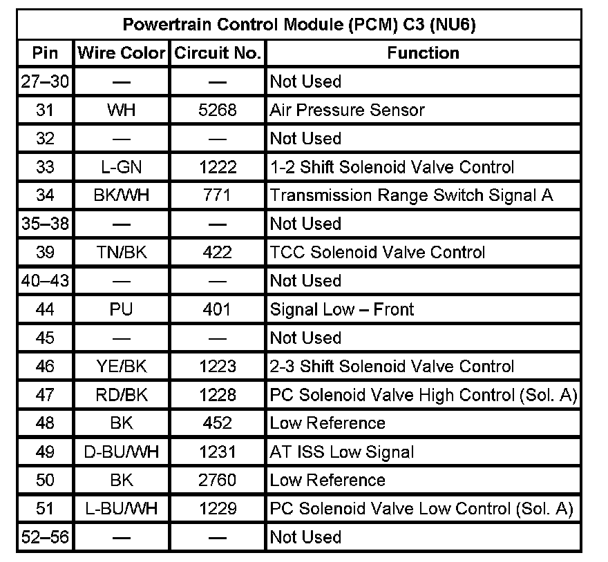 Powertrain Control Module (PCM) C3 (NU6) (Pin 27 To 56):