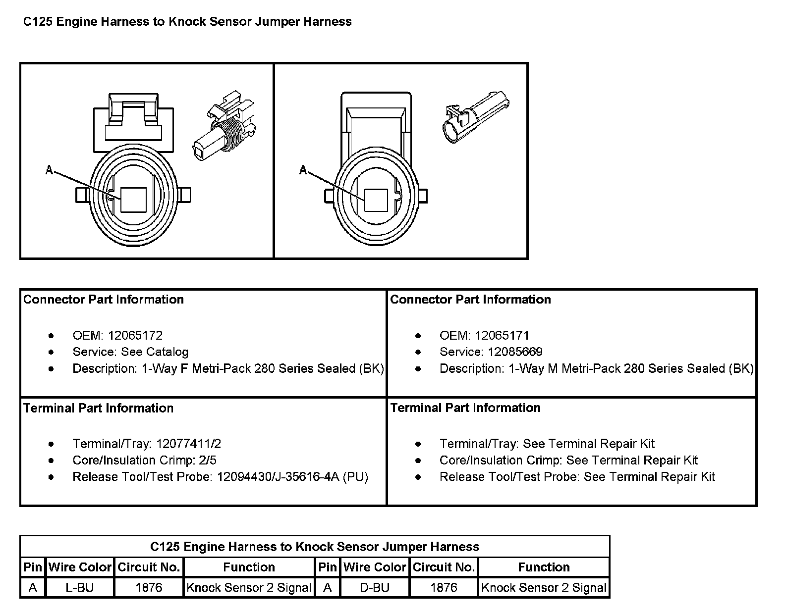 C125 Engine Harness To Knock Sensor Jumper Harness: