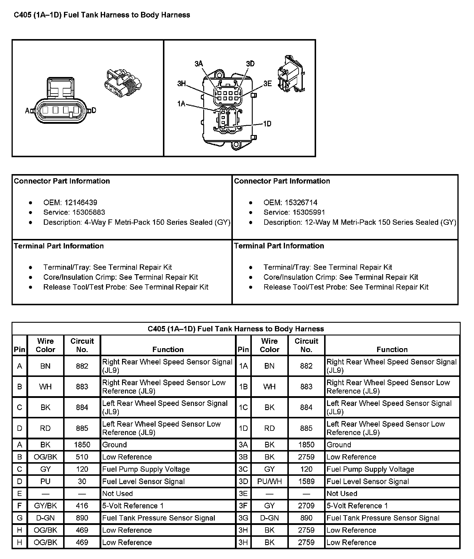 C405 (1A-1D) Fuel Tank Harness To Body Harness: