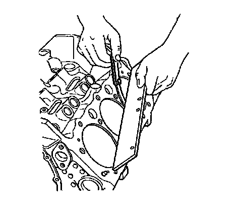 8. Use a straight edge and a feeler gage to check the deck surface for flatness. Carefully machine minor irregularities. Replace the block if more than 0.254 mm (0.010 in) must be removed.