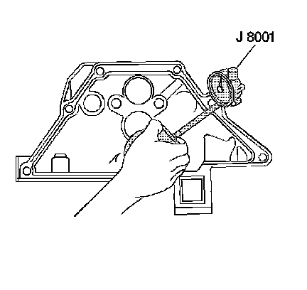 3. Place J 8001 on the transmission mounting bolt hole boss. Set the indicator to 0.