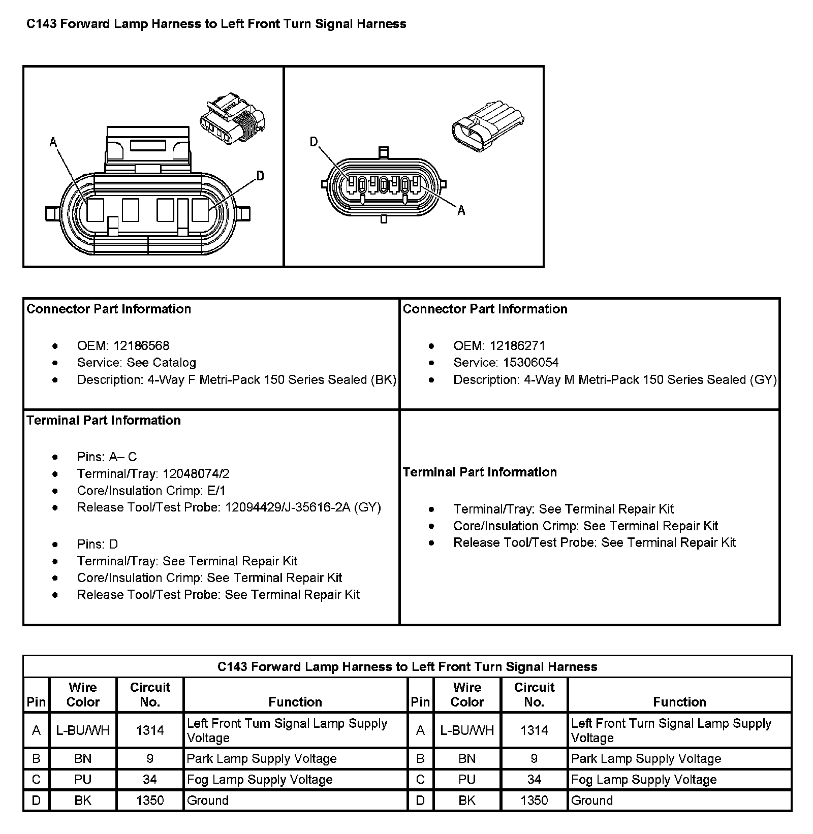 C143 Forward Lamp Harness To Left Front Turn Signal Harness:
