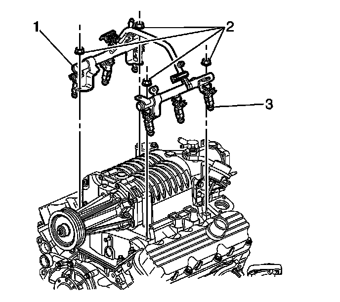 Important: Ensure the fuel rail is fully seated in the lower intake manifold assembly.