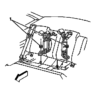 2. Remove the center rear seat belt nuts (1).