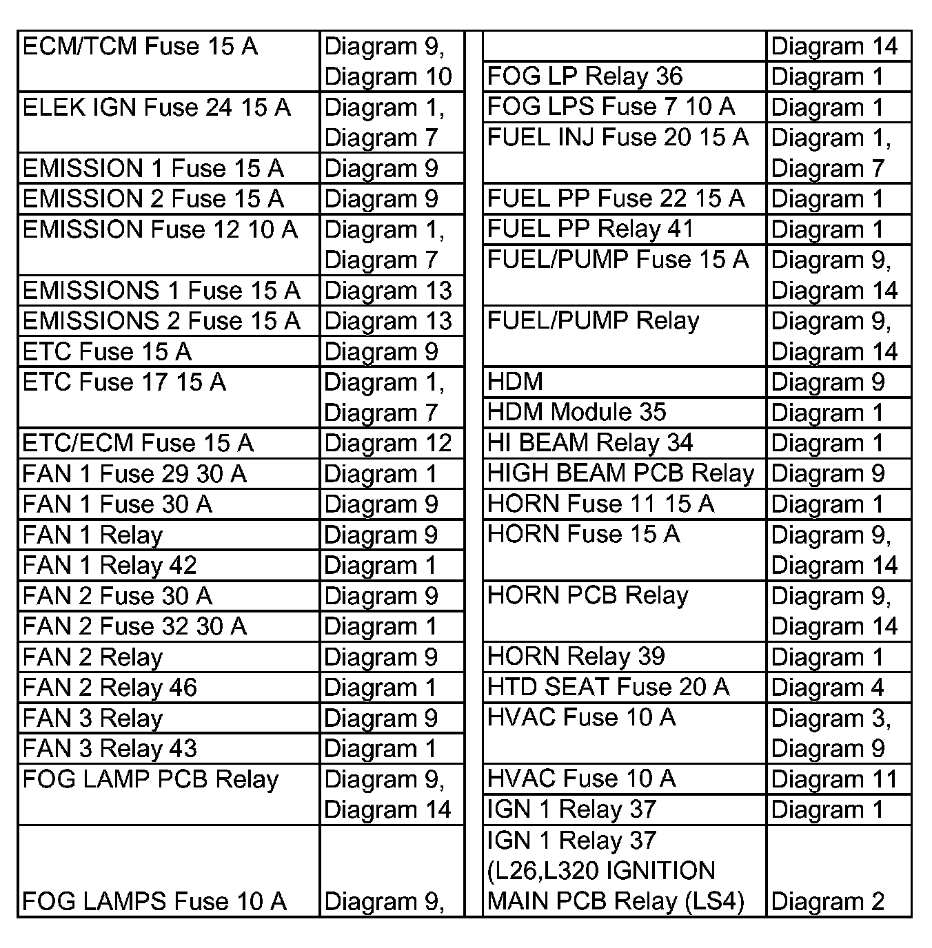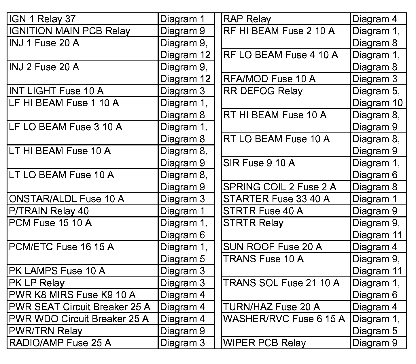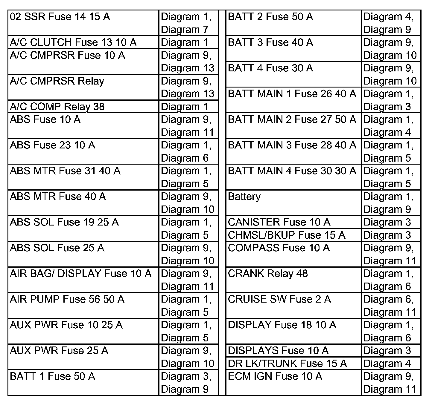 Power Distribution Diagram Index