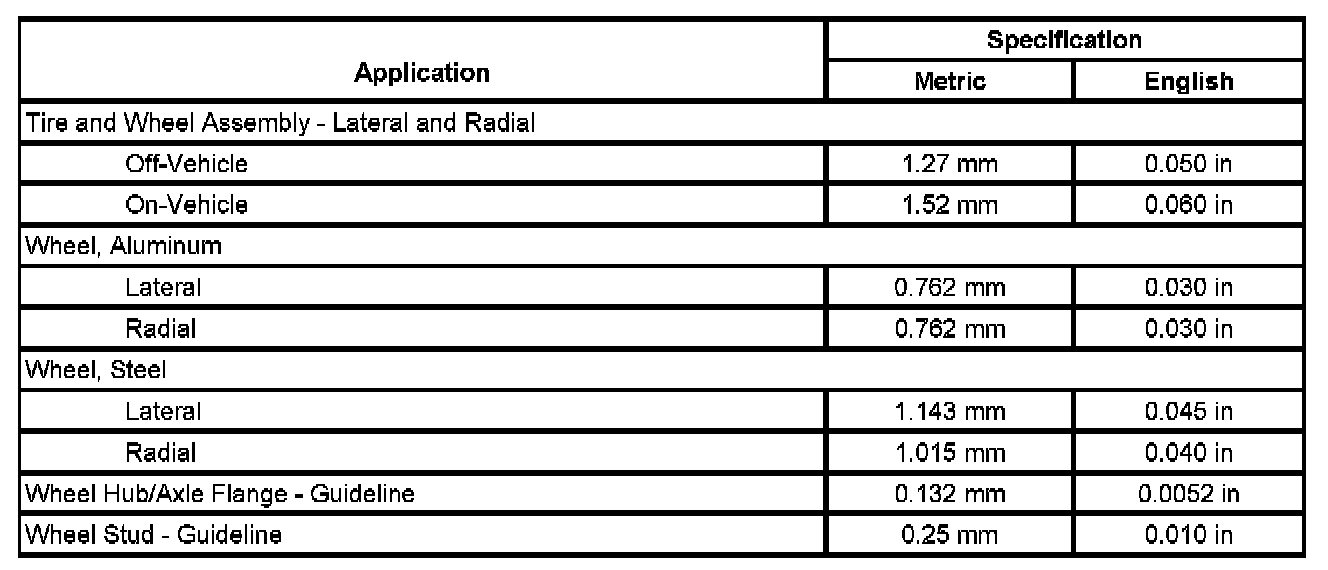 Tire and Wheel Runout Specifications