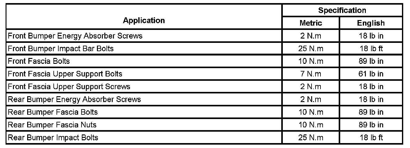 Bumper: Specifications