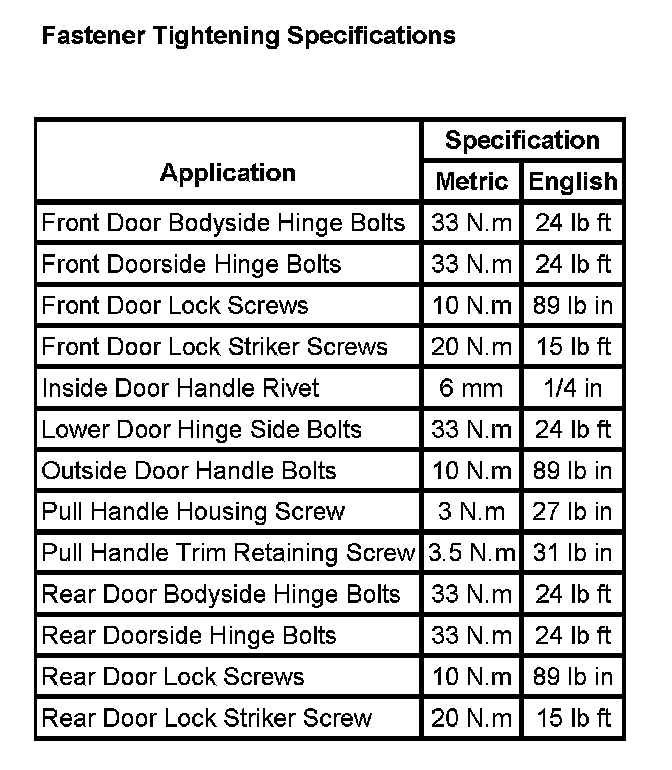 Fastener Tightening Specifications: