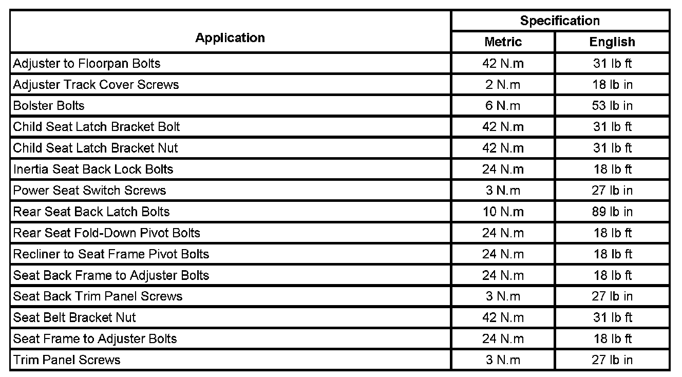 Seats: Specifications