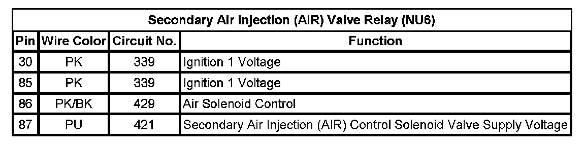 Secondary Air Injection (AIR) Valve Relay (NU6)