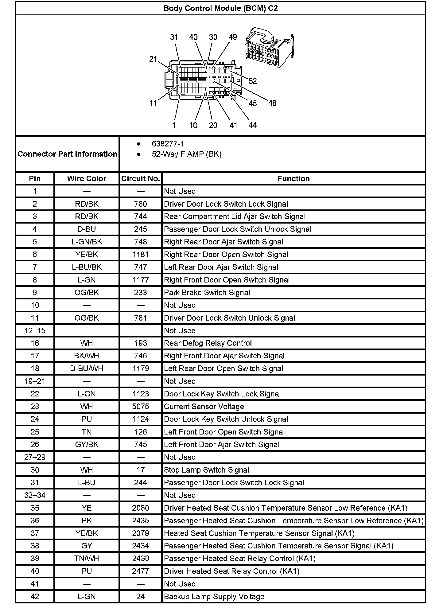 Body Control Module (BCM) C2 (Pin 1 To 42):