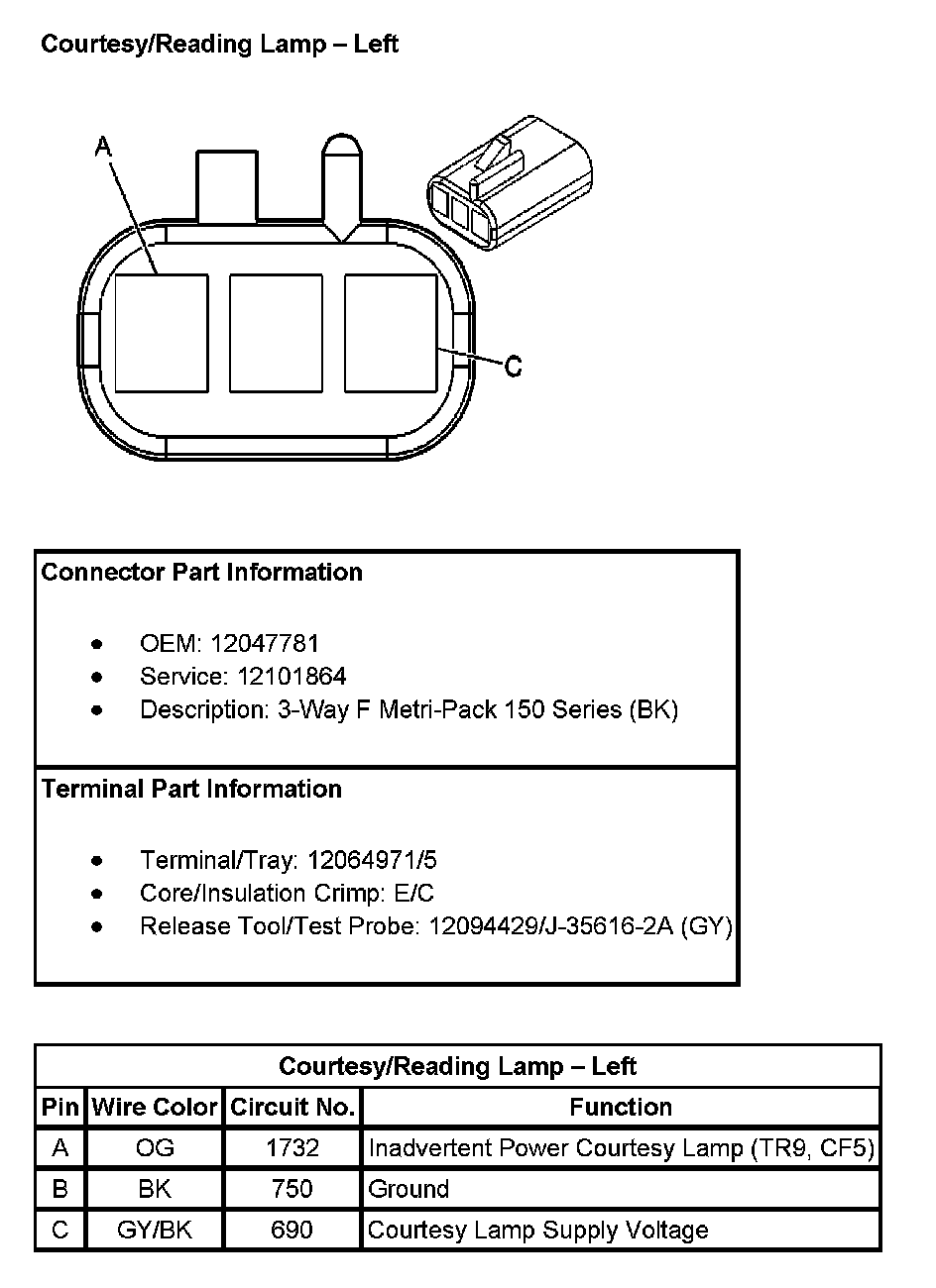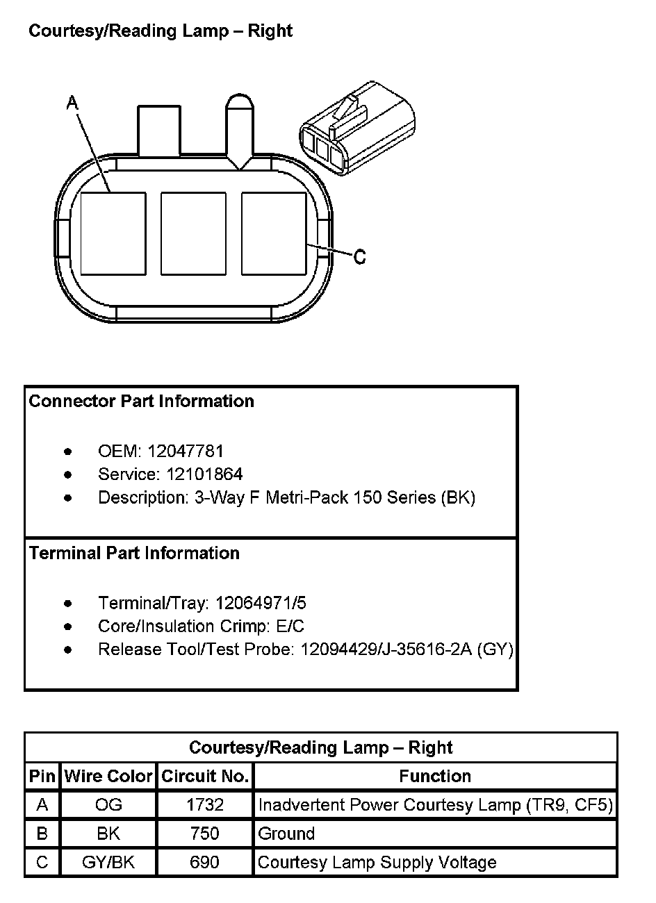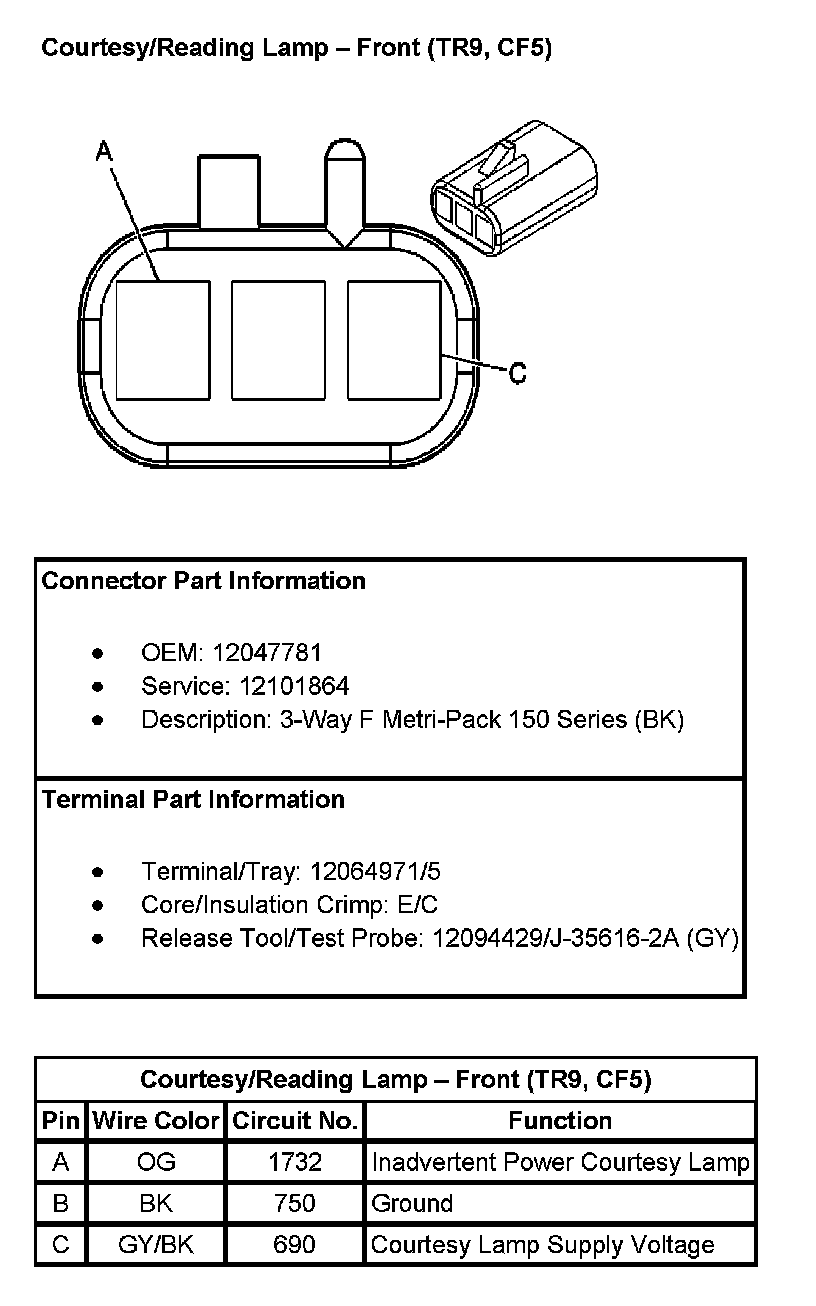 Courtesy/Reading Lamp - Front (With RPO Codes TR9, CF5):
