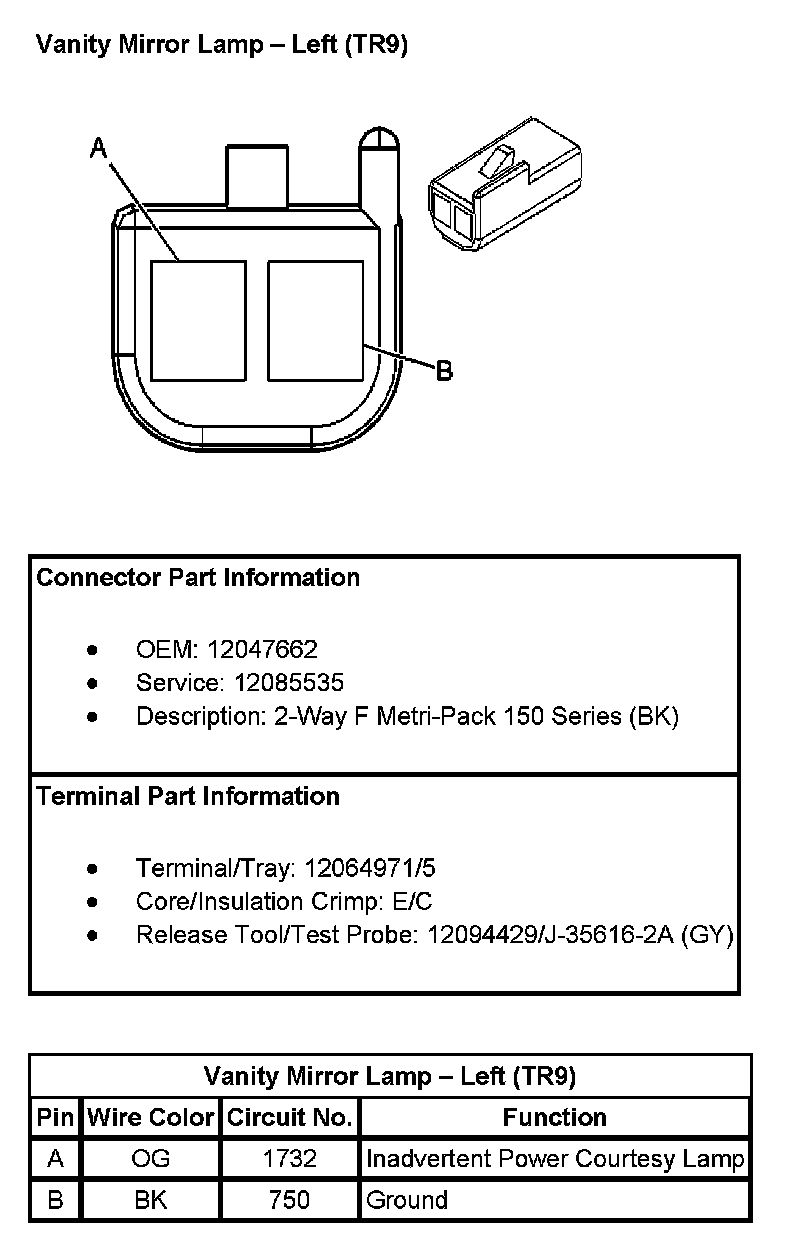 Vanity Mirror Lamp - Left (With RPO Code TR9):
