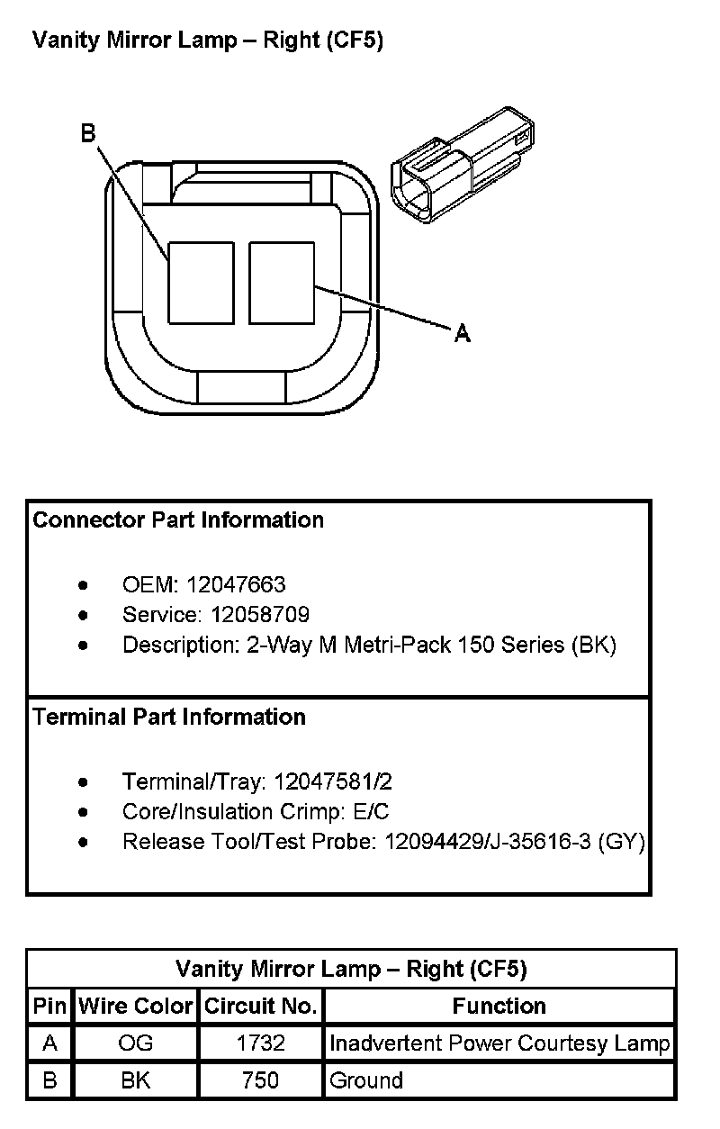 Vanity Mirror Lamp - Right (With RPO Code CF5):