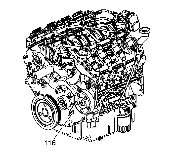 3. Locate the engine block left front oil gallery plug (116).
