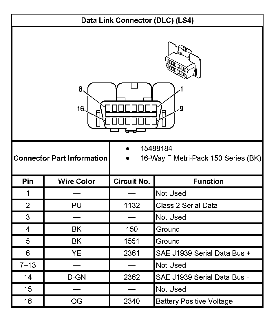 Data Link Connector (DLC) (With RPO Code LS4):