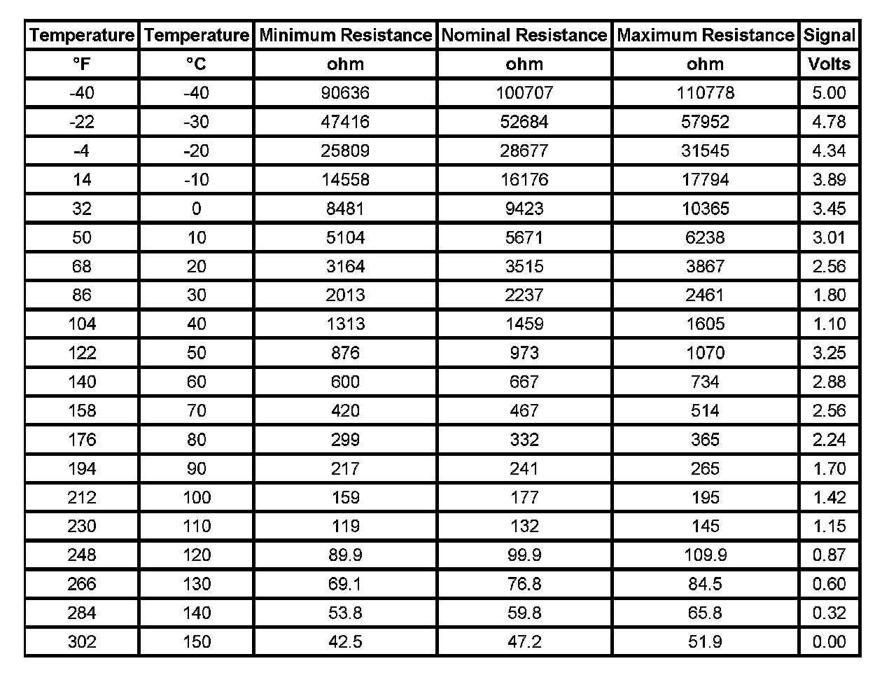 Transmission Fluid Temperature Sensor Specifications: