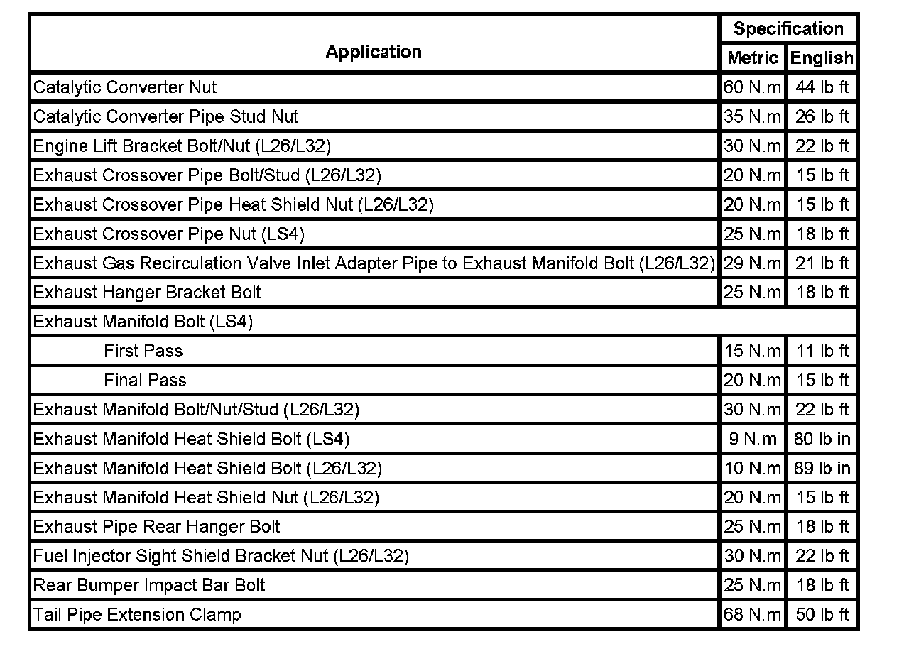 Fastener Tightening Specifications: