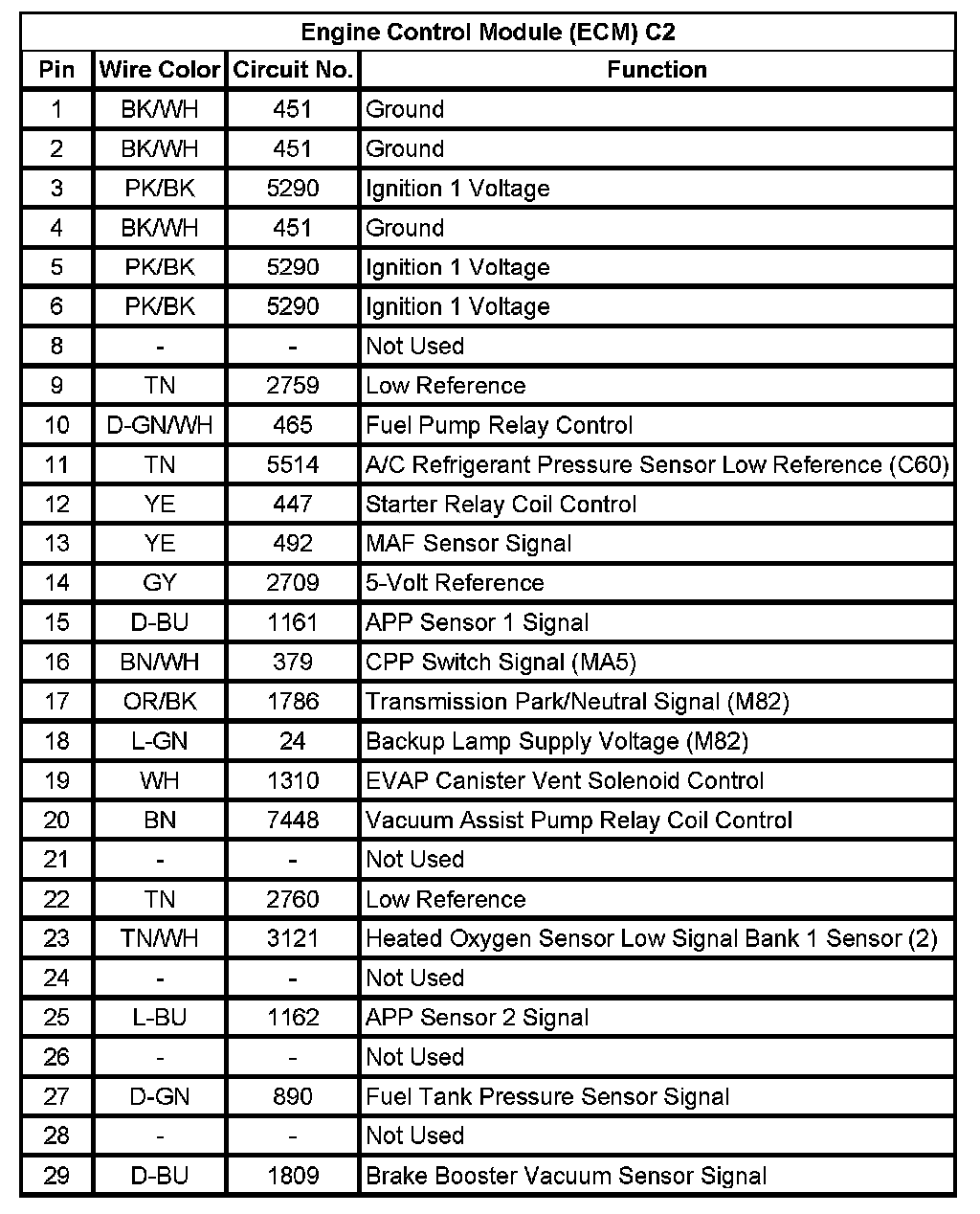 Engine Control Module (ECM) C2 (Pin 1 To 29):