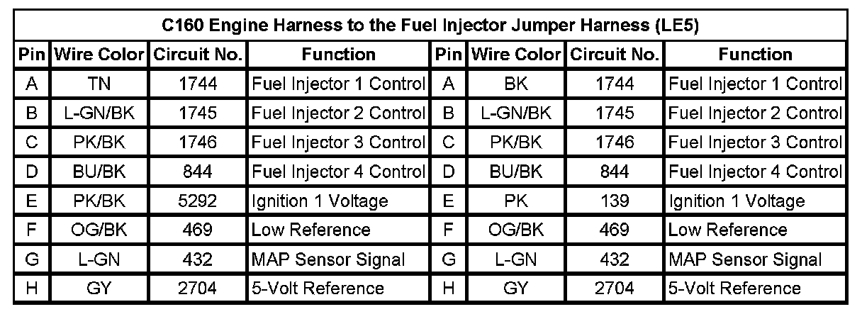 C160 Engine Harness to the Fuel Injector Jumper Harness (LE5)