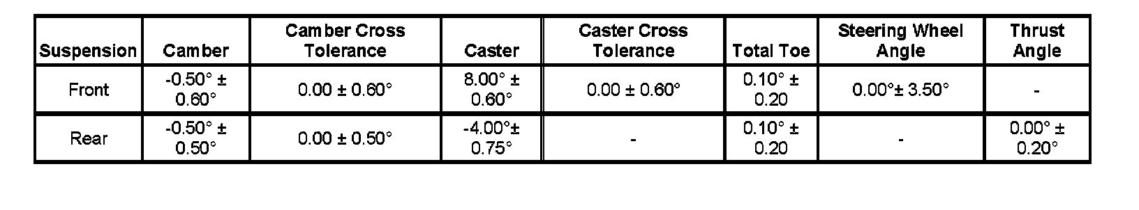 Wheel Alignment Specifications