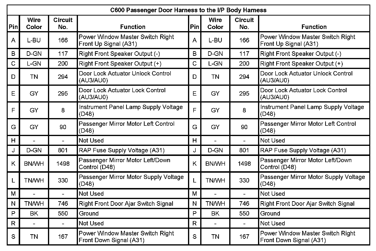 C600 Passenger Door Harness to the I/P Body Harness