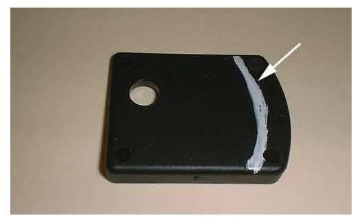 3. With a paint pen, mark the rear of the 1-2 bow. This is the triangle area highlighted in white.