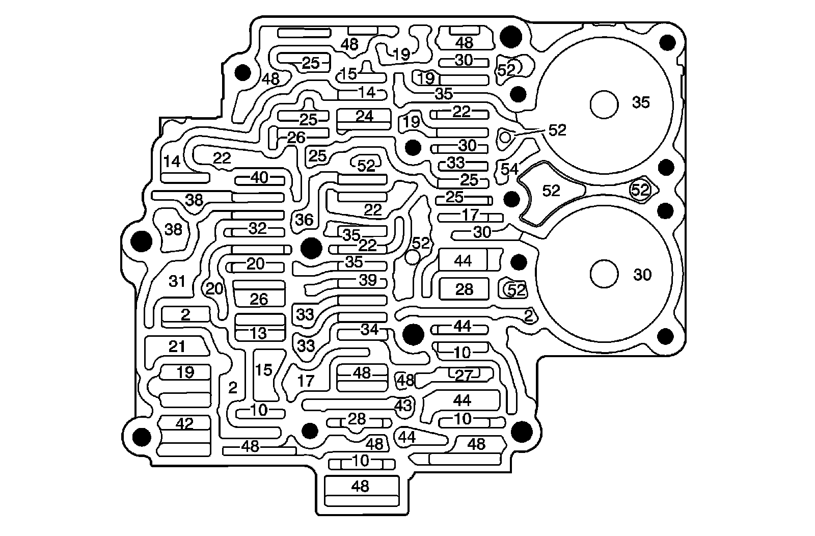 Rear Control Valve Body - Bottom Channel Plate Side