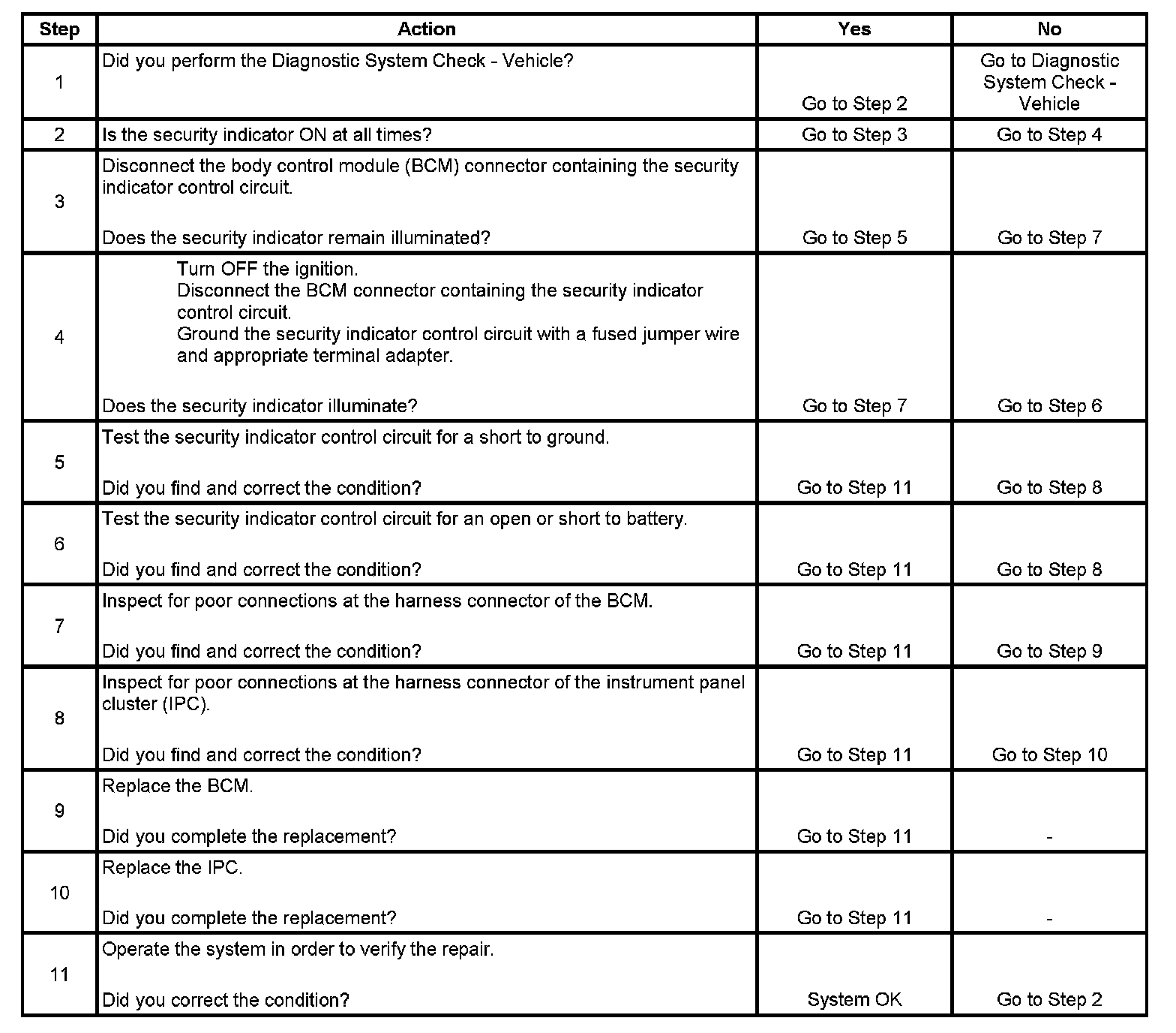 Security Indicator Inoperative
