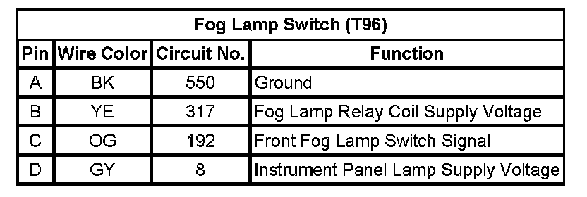 Fog Lamp Switch (T96)