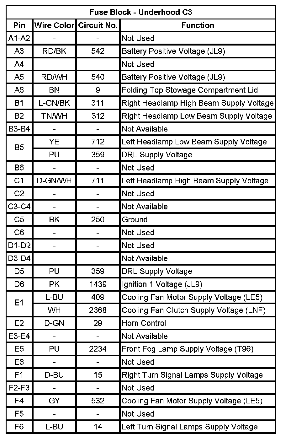 Fuse Block - Underhood C1 (Pin A1 To C9):