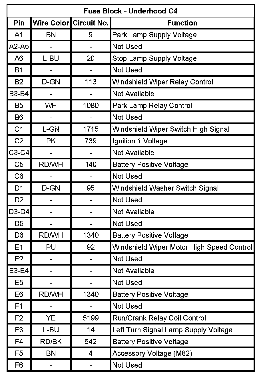 Fuse Block - Underhood C2 (Pin B10 To F12):
