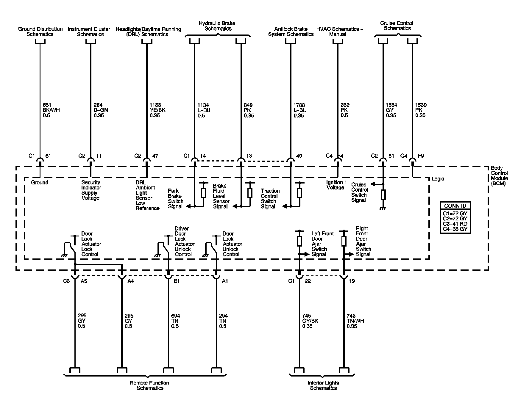 Locations: The locations for the Connectors, Grounds, Splices, and Grommets shown within these diagrams can be found via their numbers at Vehicle Locations. Locations