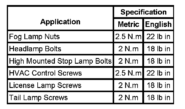 Fastener Tightening Specifications